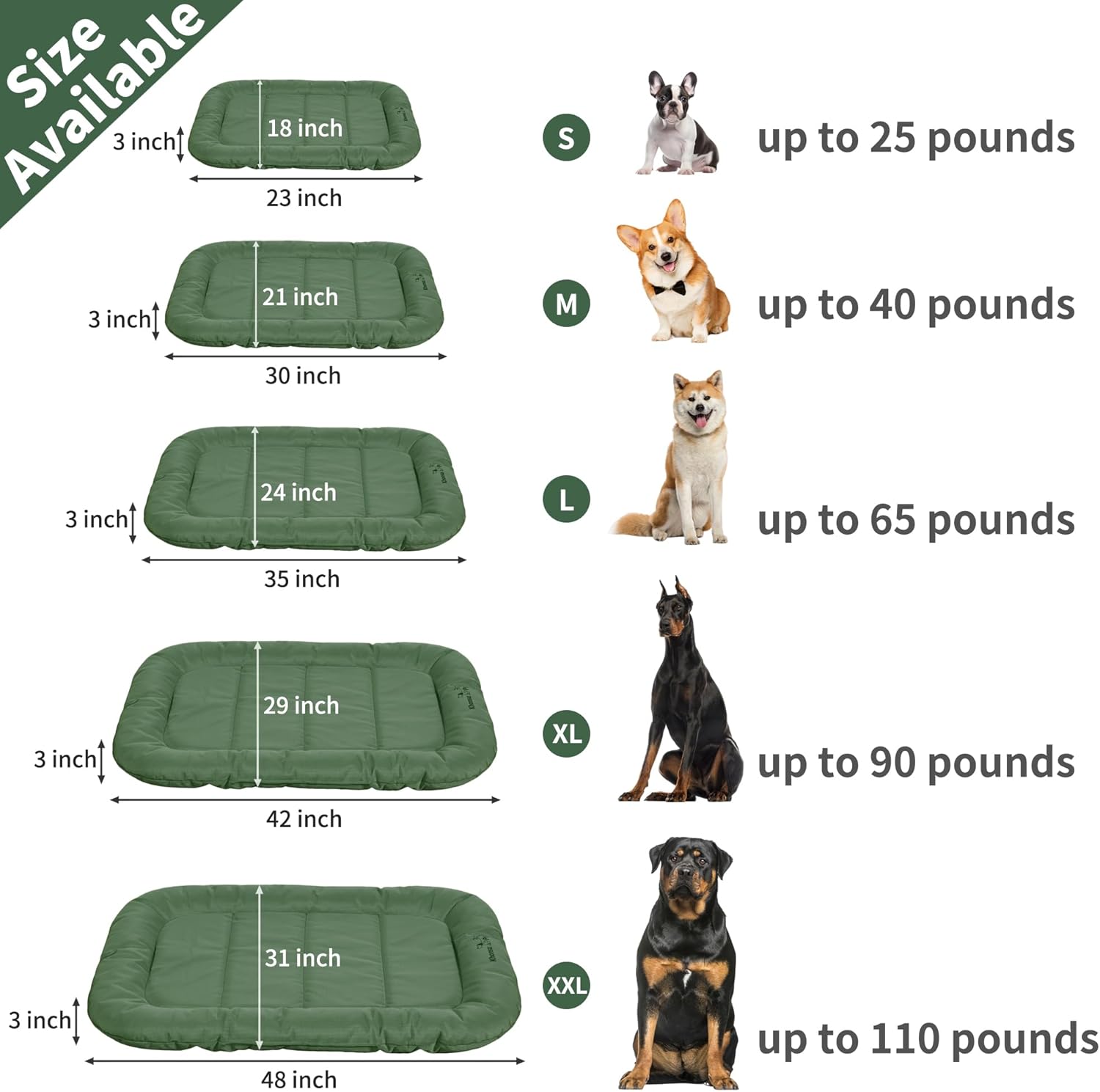 KHONSU PET Durable Dog Bed Tough and Tear Proof Dog Crate Bed, 800lbs Tear Strength PVC-Backed Waterproof Ped Bed Mat Indoor & Outdoor Use for Dogs up to 25 lbs