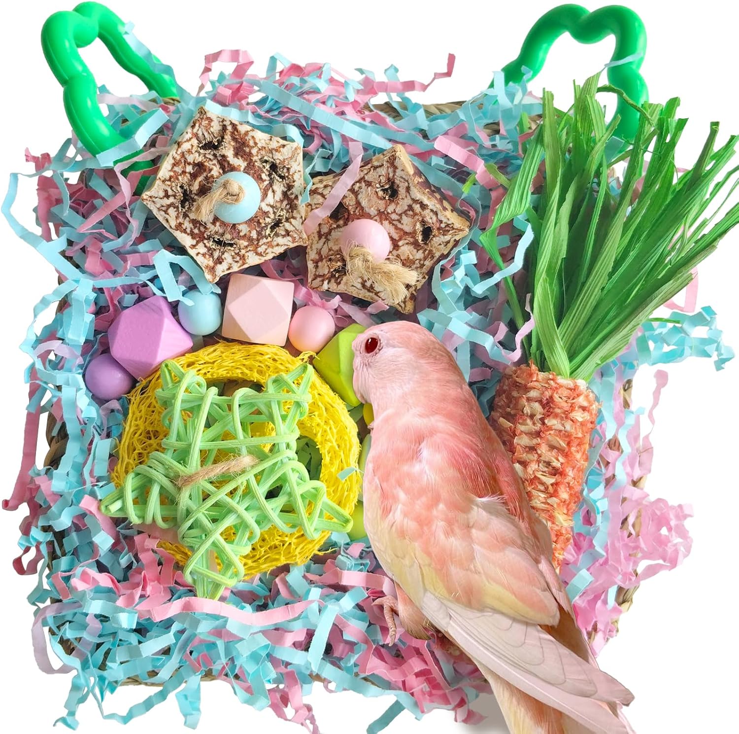 - HAPPY GROWING PROMISE : Not just for toys, but for feathered companions: Cognitive training ground: layered design promotes problem solving skills Emotional Regulator: 6 combinations of materials to ease separation anxiety