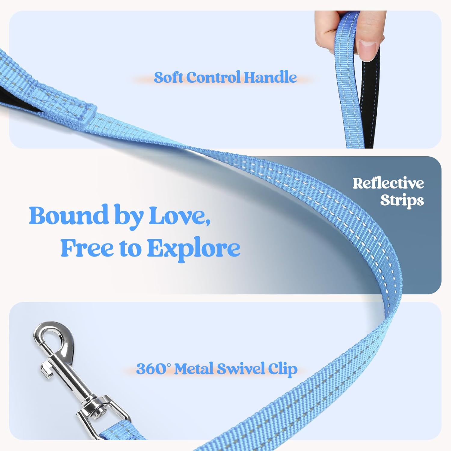 - Dog Harness with Leash Set: The color-matching harness and leash with reflective bands make it fashion and visible for pet outing. The leash is 5.12ft in length, with an anti-tangling clip and a palm-friendly handle