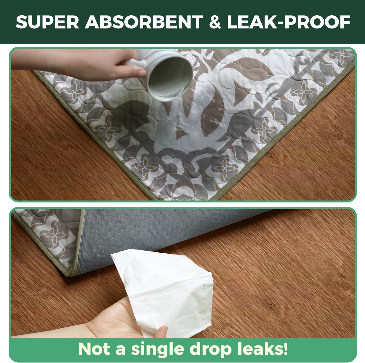 - Super Absorbent: Our dog pad absorbs up to 2L of liquid with a thick, heavyweight cotton layer — perfect as a dog playpen mat to keep your pup’s space clean and dry all day.