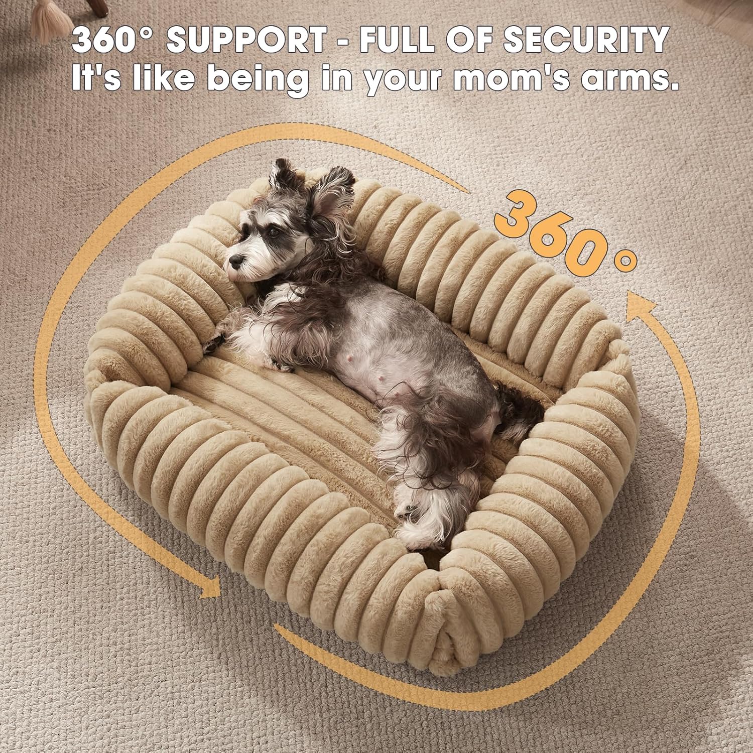 - SAFE AND SECURE: The anti-slip bottom of dog beds for a puppy, small, medium or large dog ensures your pet bed stays in place, offering extra safety and stability for your furry friend. The 360°-support-style security design helps new puppies adjust to new homes and reduces dog anxiety, which calms and comforts your pet.