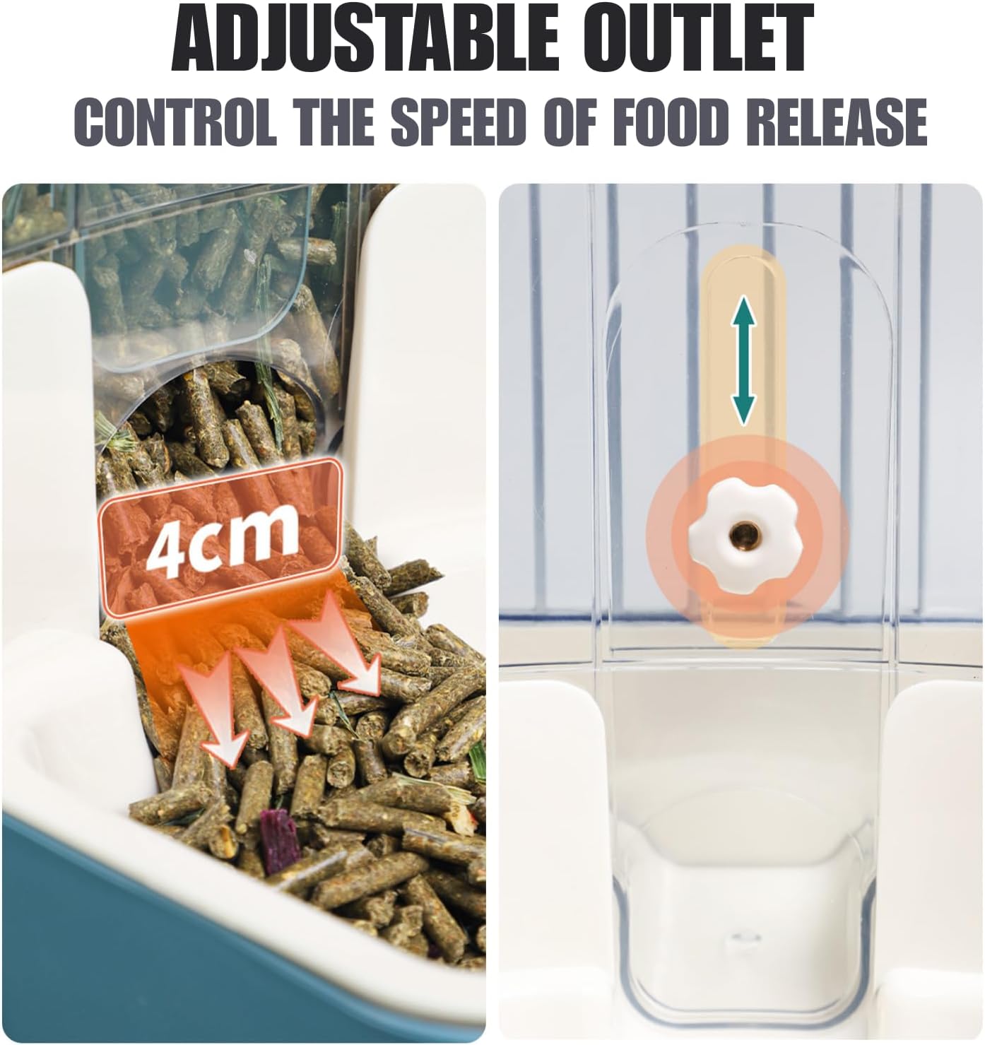 - Versatile Adjustable Outlet: Fits various bird, rabbit, guinea pig, cat, and dog feeds. Works with most common pet foods for flexible feeding.