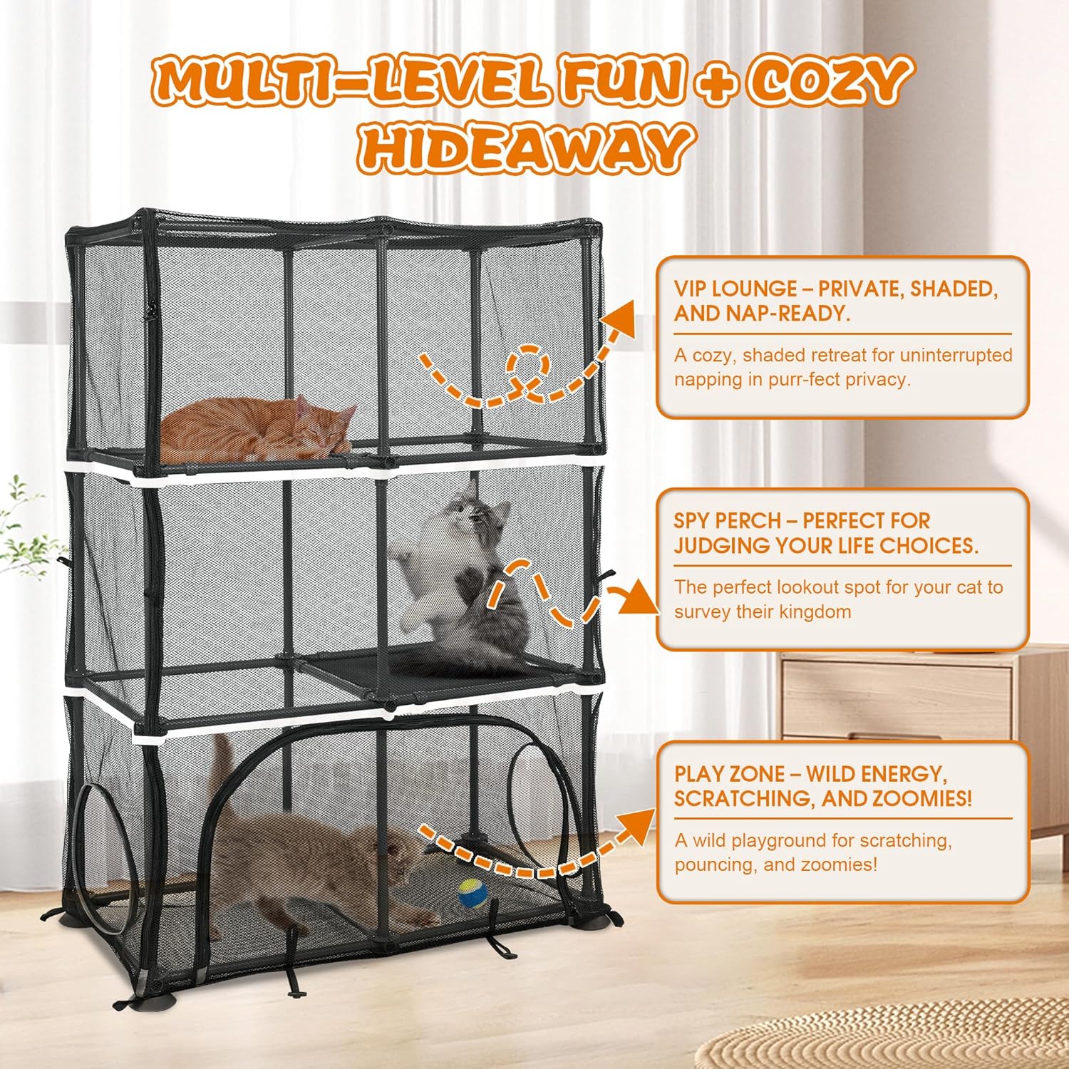- Durable & Stable Construction - PetEase Cat House features a sturdy PVC frame with lockable hexagonal connectors for secure assembly. The base is equipped with non-slip suction cups to ensure exceptional stability, supporting up to 25 lbs- perfect for energetic climbing and jumping felines. Requires no tools for quick, hassle-free setup.