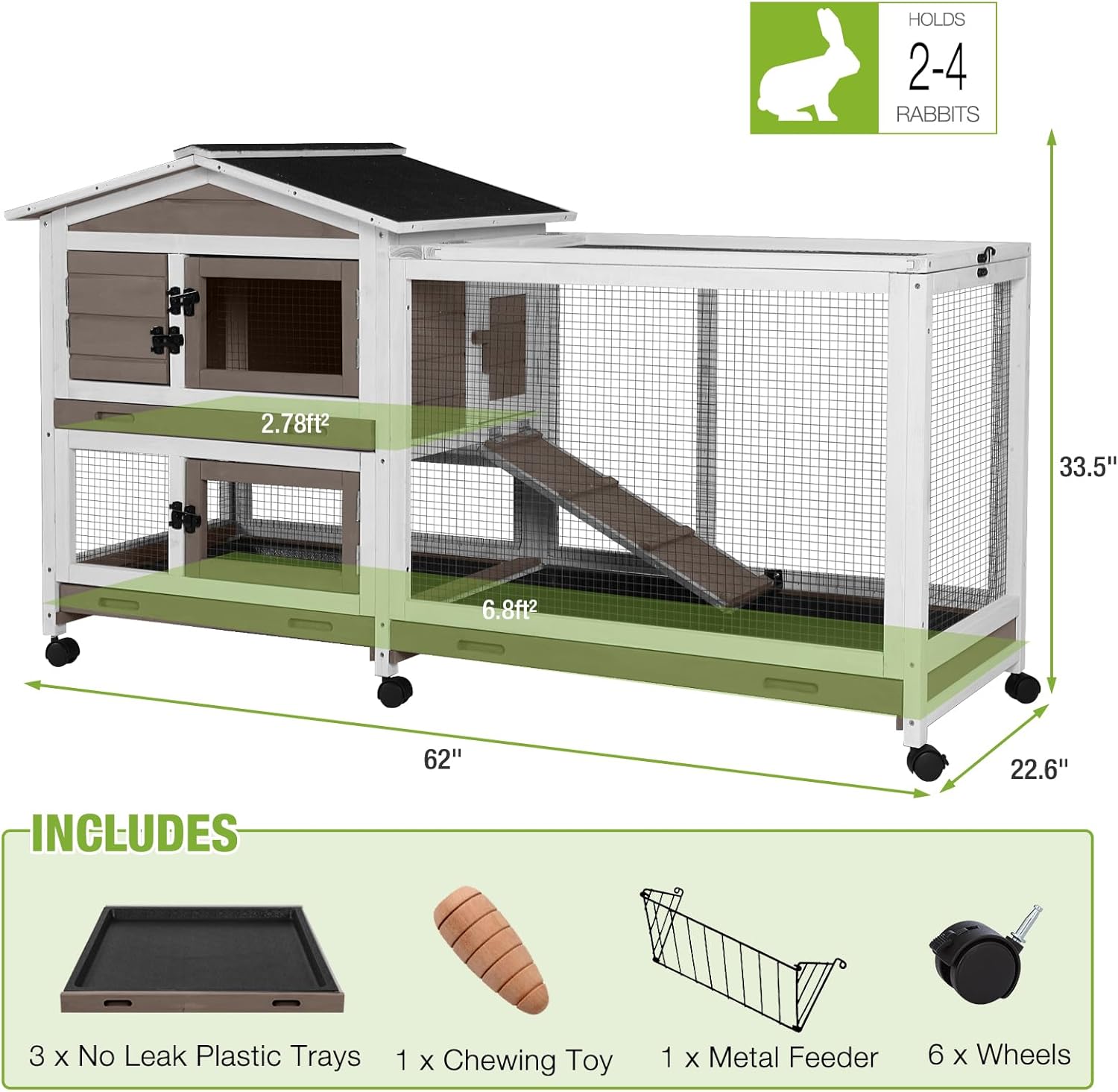• Easy to Move: 6 smooth-gliding wheels let you push this bunny cage across grass, decks, or floors. 2 wheels includes a secure brake mechanism to keep the hutch stable during use, balancing mobility with safety.
