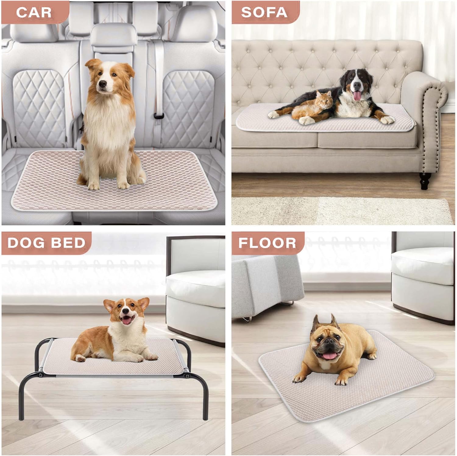 - Elaborate Design: The inner layer of the mat had water absorption cotton, which can provide strong absorption for urine and odor control. It’s also could be used as a pet pee pad or feeding mat. Double side design, would give you new experience.