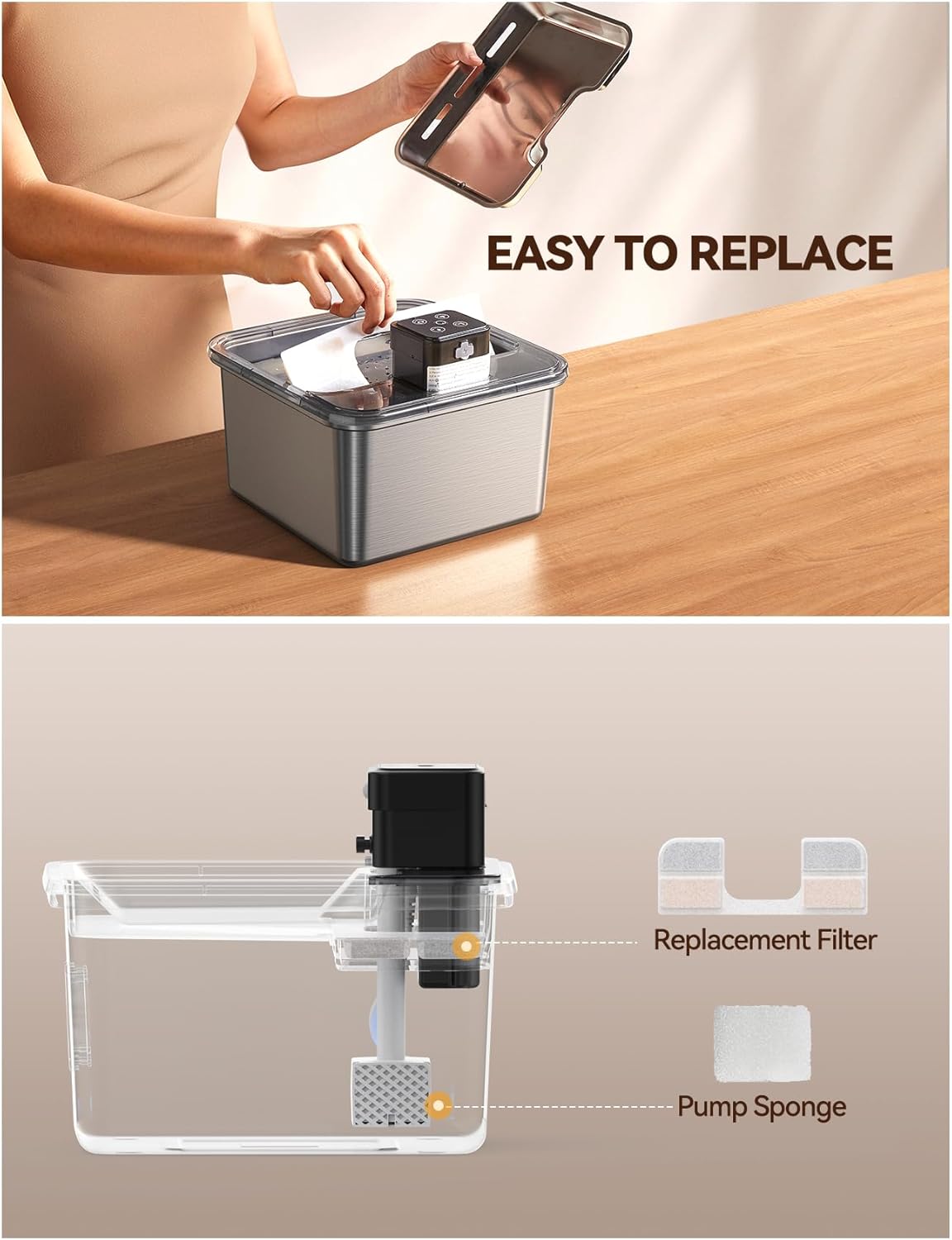 - Fresh Water in Every Sip: The 4-level deep filtration system (high-density cotton, ion exchange resin, coconut shell activated carbon) efficiently intercepts impurities and adsorbs odors, keeping the water source fresh and circulating at all times.