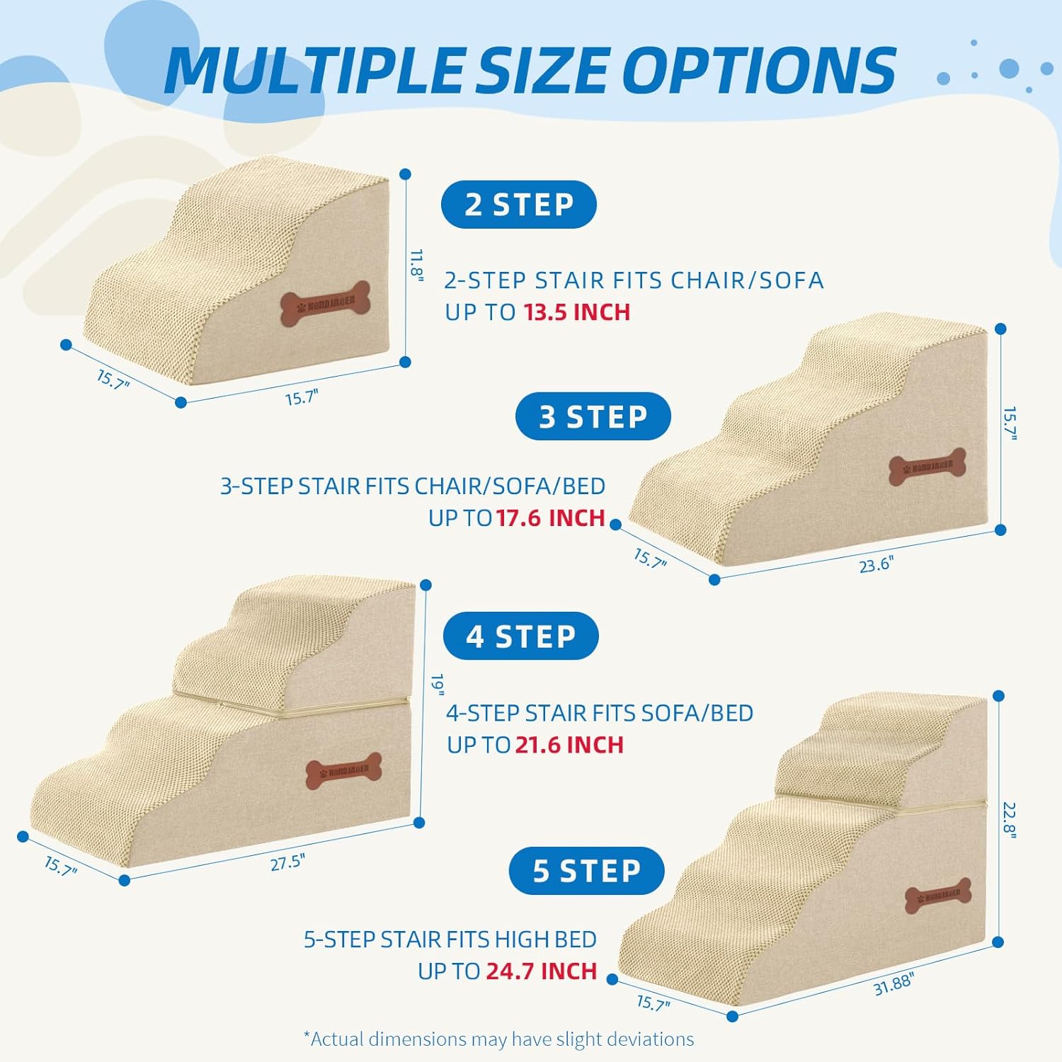 Dog Stairs for Small Dogs and Cats, 2 Steps Pet Stairs to Get on Couch Sofa and Chair, Indoor Non-Slip Balanced Portable Pet Step, High-Density Foam Ramp with Removable Washable Cover, Beige(11.8" H)
