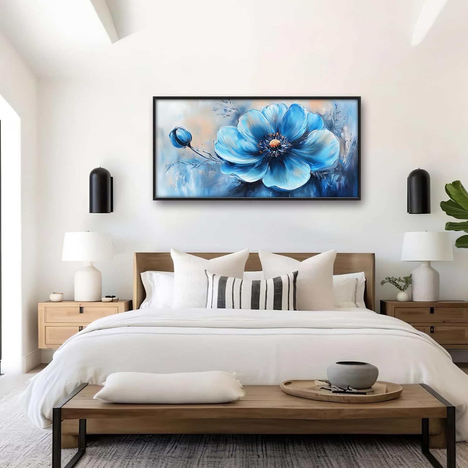 - 【Unique Design】 A blue flower painting, large canvas paintings, brushstrokes, thick paint strokes, delicate and elegant style, meticulous details, soft light and shadow, exquisite colors, gorgeous, eye-catching.
