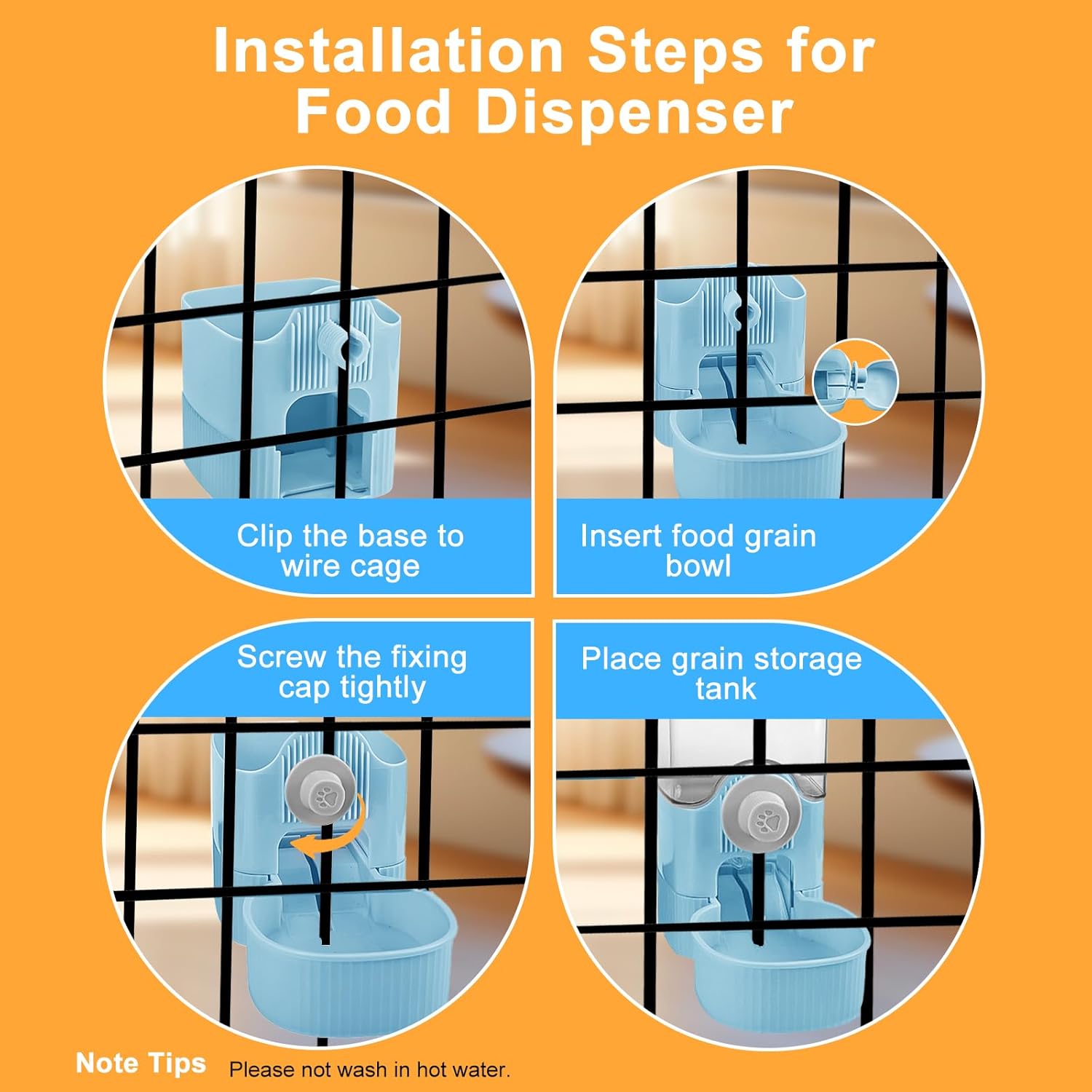 - Easy to Clean: Itβs made of plastic, all parts can be detachable to water wash. The removable food box is not only simplifies refilling, but also for daily clean. The transparent food box allows for easy checking the remaining grain.