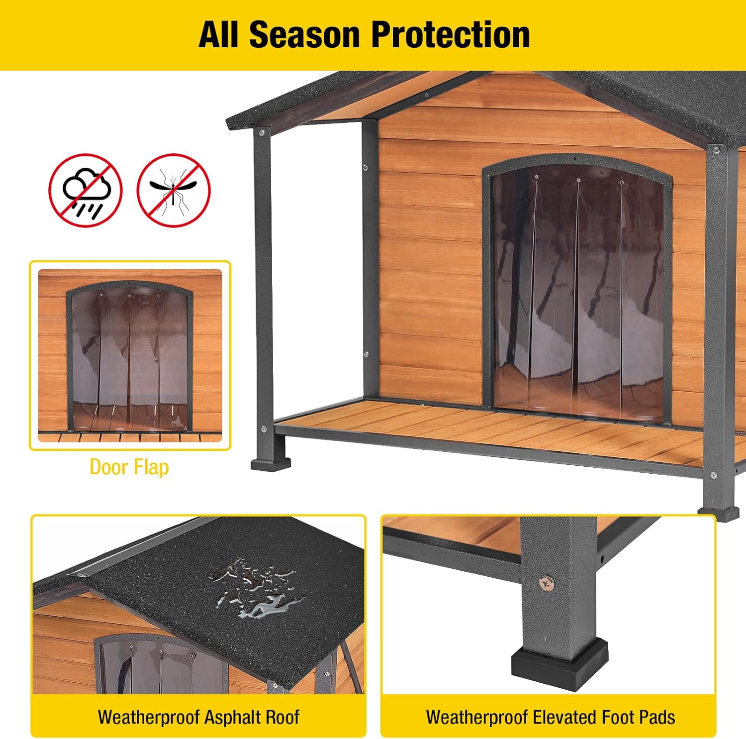 - All-Weather Asphalt Roof: The sloped asphalt roof ensures this dog house stays dry inside, protecting your pet from rain, snow, and harsh sunlight
