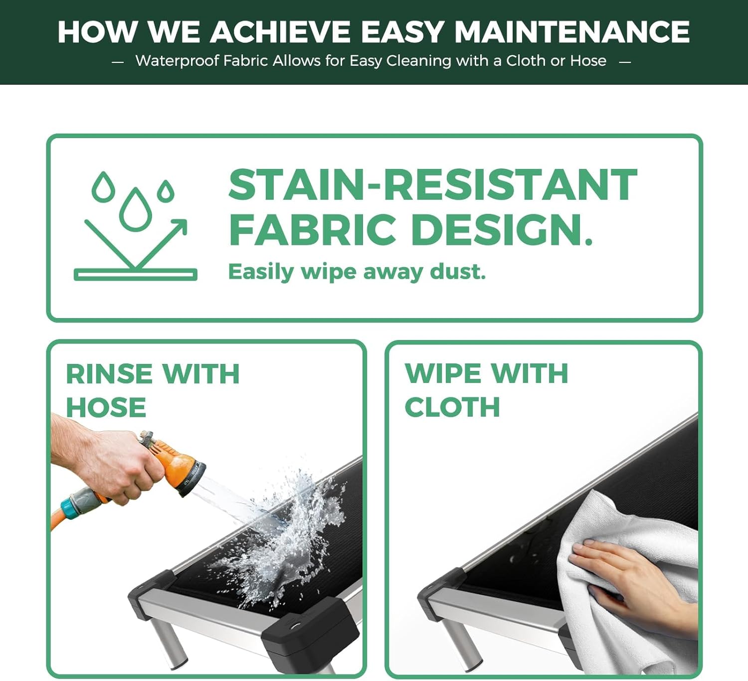 • Indestructible & Dog-Safe: Crafted with a premium aluminum alloy frame and chew-proof edges, this bed withstands aggressive chewers while keeping your pupโ€™s gums safe and happy.