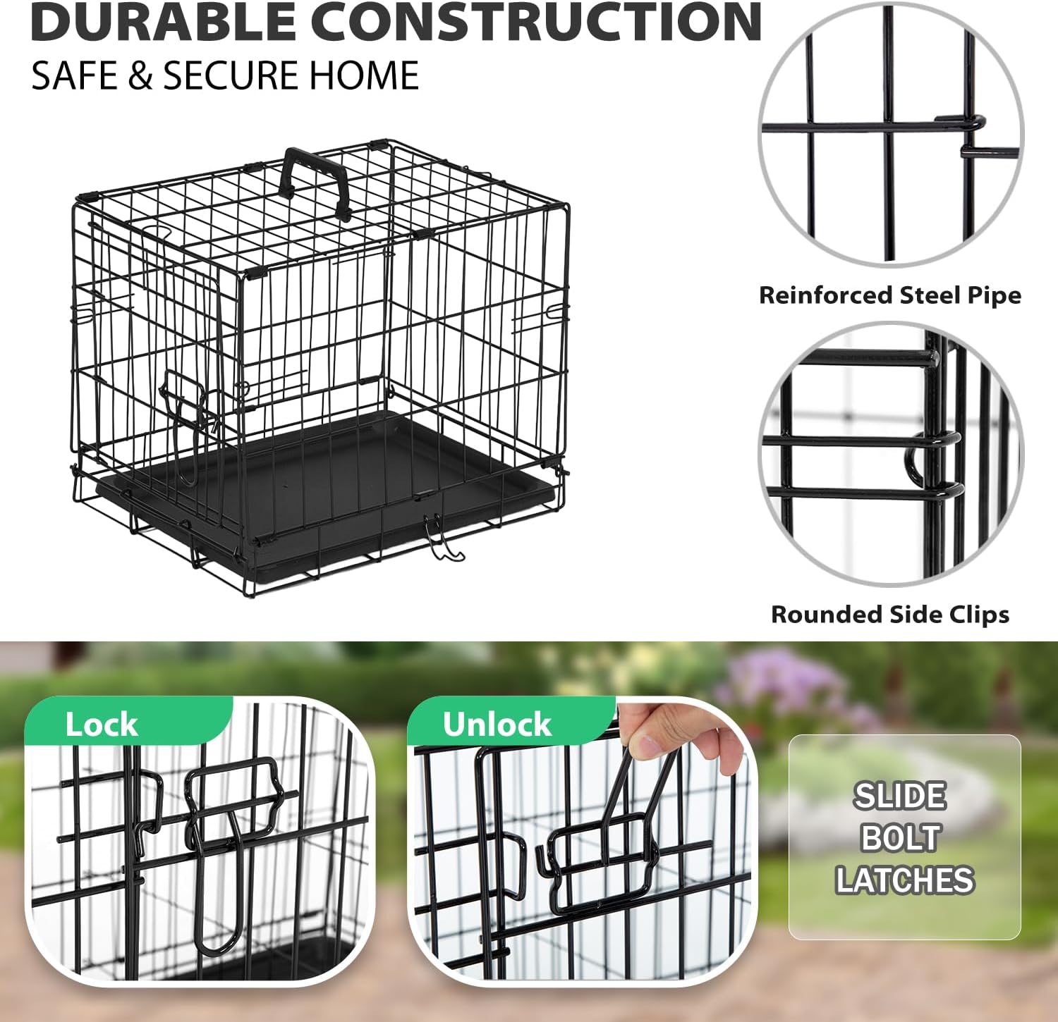 BestPet | Dog Crate | 18" | Black | Foldable Metal Kennel with Double Doors, Secure Slide-Bolt Latches, Leakproof Tray | Portable Dog Cage for Small Breeds | for Travel, Indoor & Outdoor Use