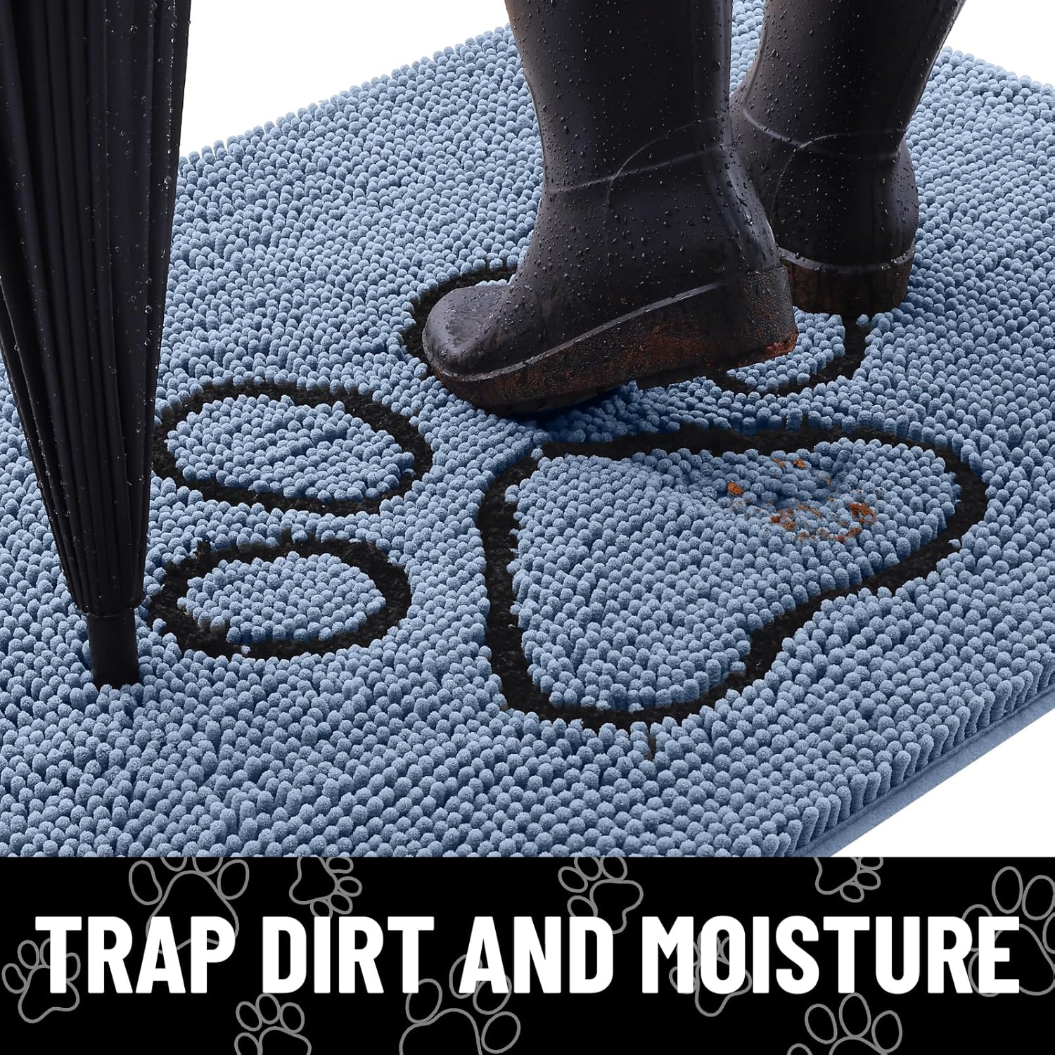 Smiry Dog Door Mat for Muddy Paws, Absorbent Dirt Trapper Non Slip Quick Dry Washable Chenille Mat for Mud Dogs, Entry Rug for Indoor and Outdoor (30x20 Inches, Airy Blue and Black)