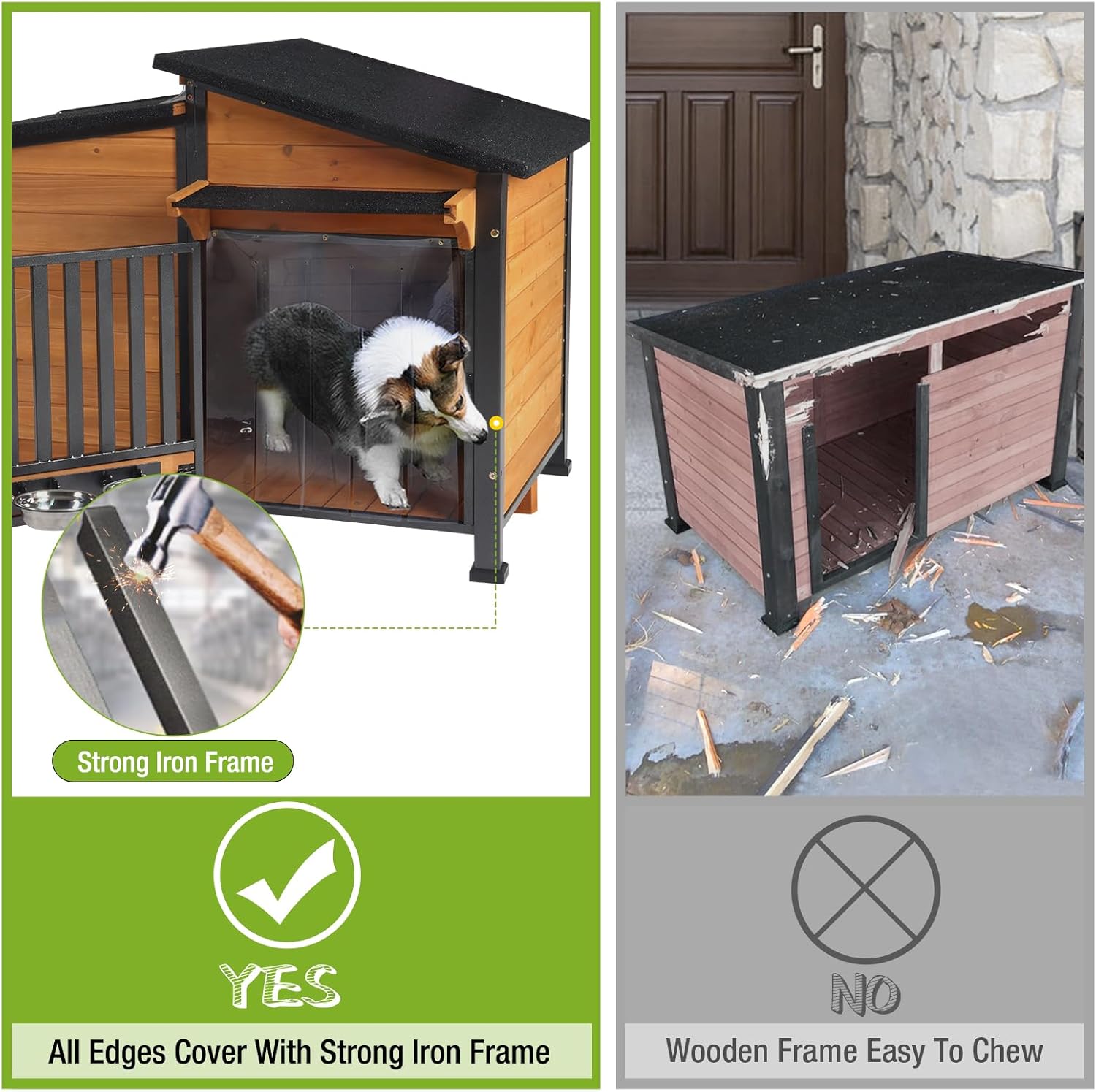 • Spacious, Comfortable Shelter: Generous 39.7"L x 25.5"W x 32.2"H size offers ample room for your dog to rest, relax, and stay safe outdoors. Perfect for backyards, patios, or porches