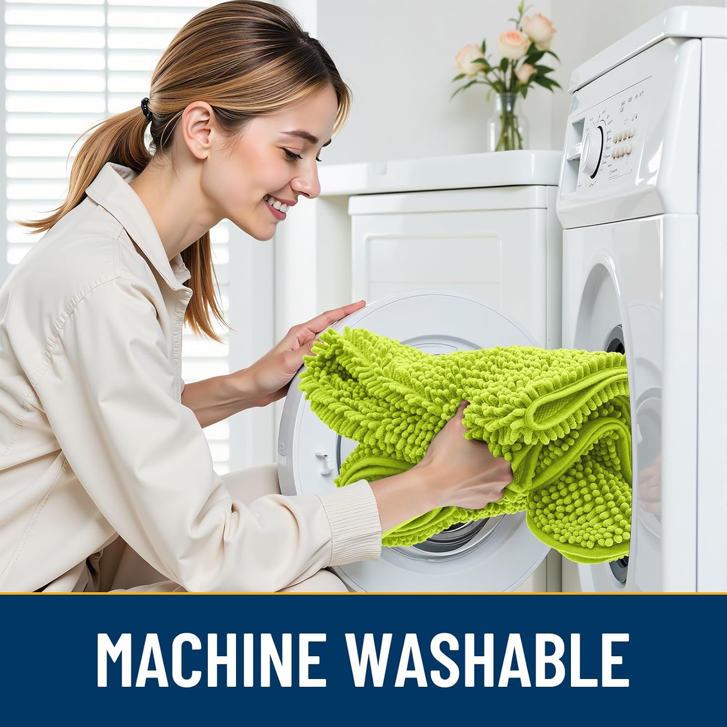 - [Absorbent and Dirt Trapper] High-density chenille dog mat, super absorbent and dirt-catching, whether wet after shower, muddy or moisture bring back by dogs, it can absorb well, so that you and your favorite pet can say goodbye to the wet and mud. It's an excellent choice for use as an entryway door mat, a welcome door mat or a dirt-trapping door mat.