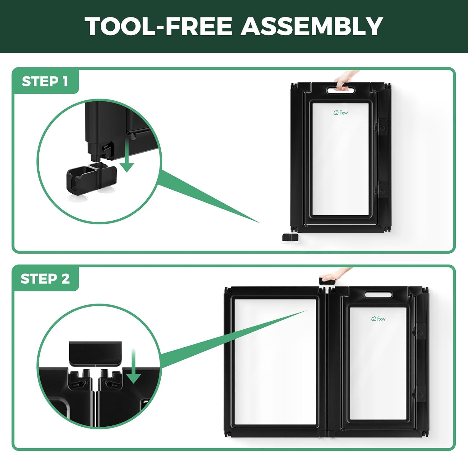 - Tool-Free, Customizable Assembly: No tools required—simply snap the panels together to create the perfect play area or barrier, with flexibility to adapt to any space.